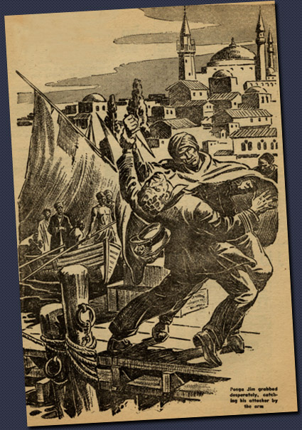 Trying to discover the nature of the conspiracy Jim travels to Suez, Port Said and the Ramleh section of Alexandria. He meets an influential young woman, mysteriously connected to the plot and attempting to walk the thin line between supporting Arab unity and refusing aid to the power mad men who wish to control the Arab world.